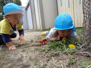春の草花、虫たちを沢山園庭でみられるようになり、子どもたちはどの年齢の子もお花や虫を身近に触れ過ごしています。