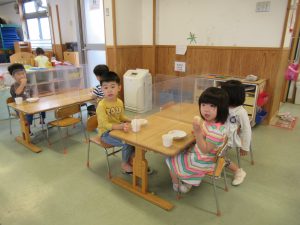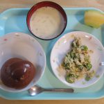 4歳児クラスのA君に「給食の先生、今日のおやつのおにぎりね、いつも少ないのにしていたけど、多いのをもらって全部食べたよ。食べてみたらね、おいしかったよ。」と声をかけてくれました。
