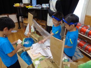 今回のワクワクDAYのねらいはもちろん楽しむこと!でもその中で意見のぶつかり合いがあったり、自分の思いが通じなかったりと、協同することの難しさに触れた子もいたのではないでしょうか。友だちと考えが異なるからと、批判したり、諦めてしまうのではなく、考えが合わないながらも工夫をし、折り合いをつけることで、乗り越えていける力を身につけていってくれればと感じています。