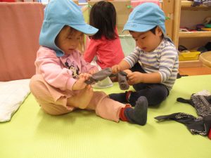 11月になりましたが、今年はまだまだ日中の暖かい日は続いていますね。保育園の子ども達も元気いっぱいで遊ぶ日々です。最近のひよこ組(1歳児)の様子なのですが、子ども達にも少しづつ変化が見られてきました。自我が出てきて、言葉や主張もするようになり、「これがやりたい!」「あっちがいい!」「これは嫌だ!」言葉で伝えてくれる子もいれば、喃語や指差しなど身振り手振りなど表現方法は様々です。いわゆる、イヤイヤ期の初期段階…といったところでしょうか?(笑)