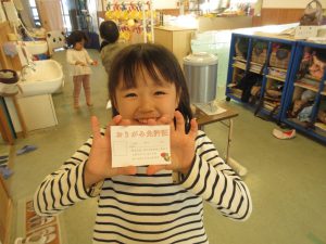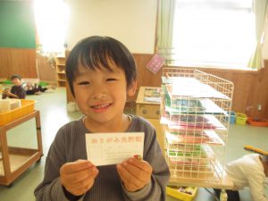 そこからしばらくしたある日、、、、。自分から「やる」と言ってきました。するとそこからはトントン拍子で合格していきました。Tちゃんに「お家で練習したの?」と聞くと「うん」と答え、さらに保護者にも話を聞いてみるとお家でたくさん練習したようで、それで自信になり1週間もかからず全部の検定を合格して見事に折り紙免許書を手にすることができました。自信がなかったから諦めていましたが、最後は陰で努力をして自信に繋がった瞬間でした。