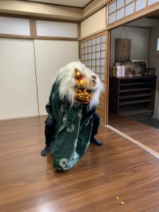 感染症の拡大で中止されていた「獅子舞」が今年1月3日にお寺に来ていただきました。私が幼いころから毎年お正月に家族が集まり、獅子舞に各々の頭を噛んで邪気を食べてもらったり、無病息災を祈るなどの意味があって縁起物であり、一年のはじまりをお祝いします。年齢を重ねた今、私は、獅子舞を行う方々が地域の方で受けついでいくことが大変なことと思うようになりました。若い方々が鳴り物をならし、ベテランの方々の姿を一生懸命に見てつながっていくことを私たちは応援しています。先輩の中には卒園児第1期生から平成生まれの若い卒園児と頑張っている姿を見ると成長する姿を若者の祖父母の姿や言葉を思い浮かべて、微笑ましく心にじんわりと温かさを感じました。