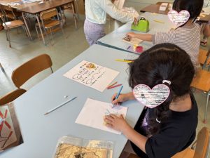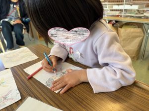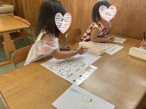 出してみると、嬉しそうに手に取りジッと見ている子、見ながら少しずつ真似をして描いてみる子がいました。