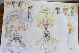 本来は子どもたち自身が描きたいものを自由に描いて楽しんで欲しいと思い、描き方などは特に知らせていませんが、絵を描いてみたいけど、どうやって描けばいいのか分からない姿が長い期間続いていた為、描き始めのヒントになるように子どもたちの好きなキャラクターの描き方を出してみました。