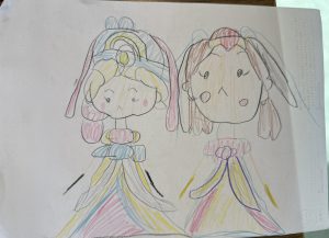 お友だちと色々な物語を作りながら描いたり、個々に描きたいものを描いたりこれからも色々な絵を楽しんで描いて欲しいです。